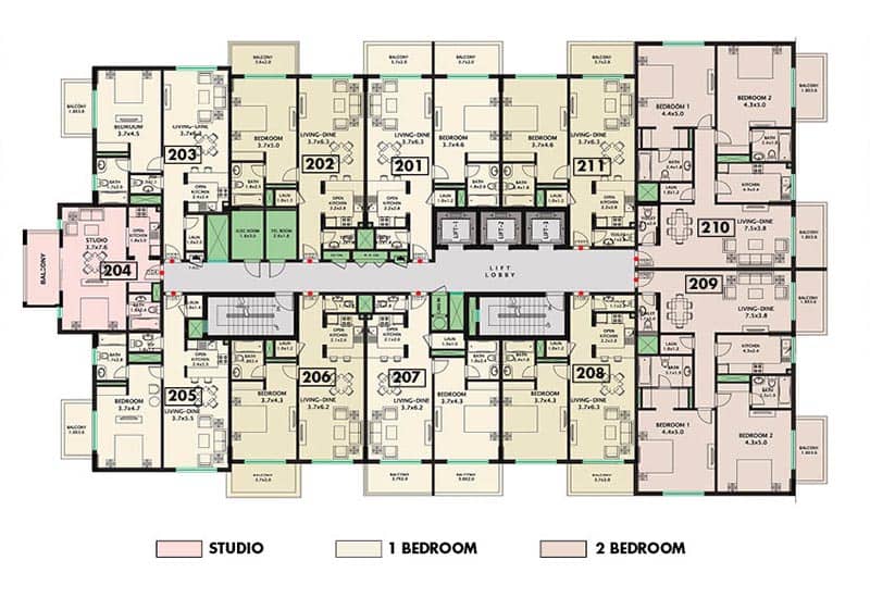 | 205 | 1 BEDROOM | 730 | 69 | 799 |